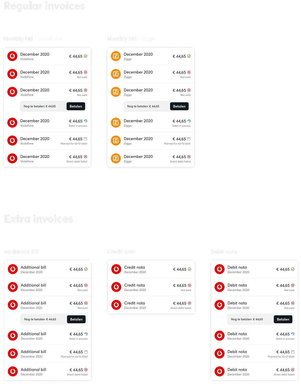 Designed core experiences like Discover and the combined invoices overview,translating research and constraints into reusable patterns.